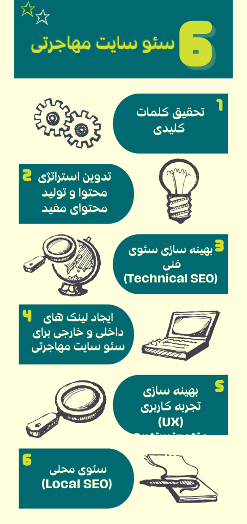 برای اجرای اصولی خدمات سئو سایت مهاجرتی، باید به چند نکته کلیدی توجه کنید: